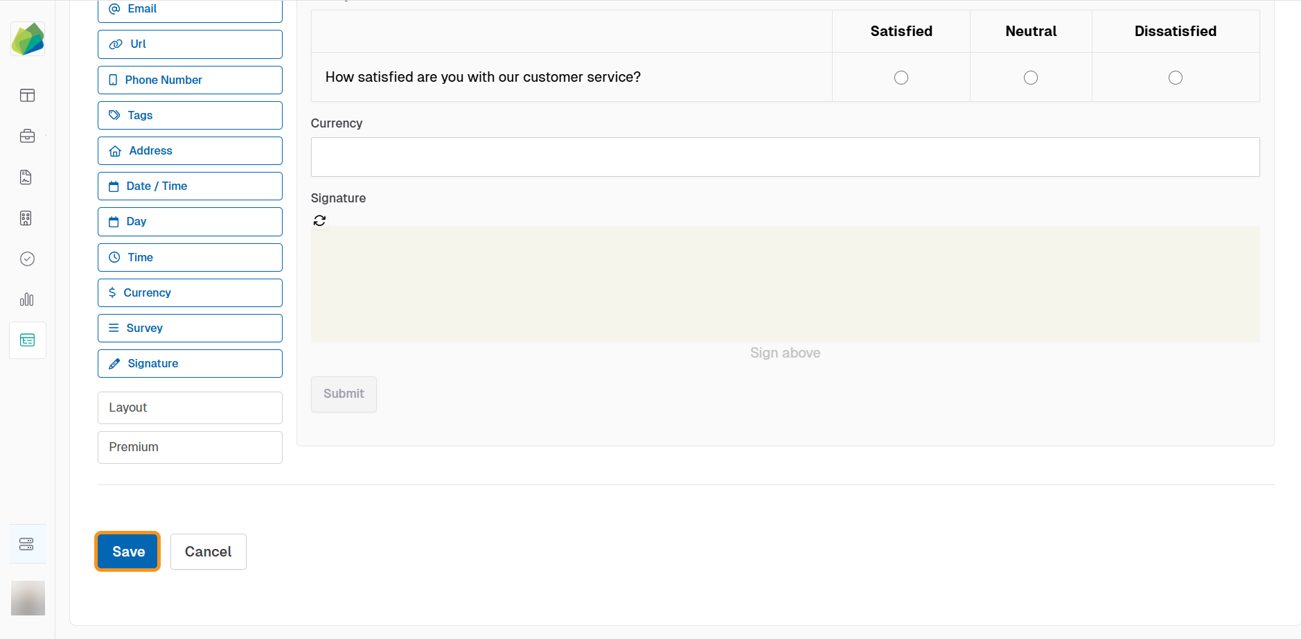 Once you have finished working and are ready to save the Form Template, click Save at the bottom of the page.
