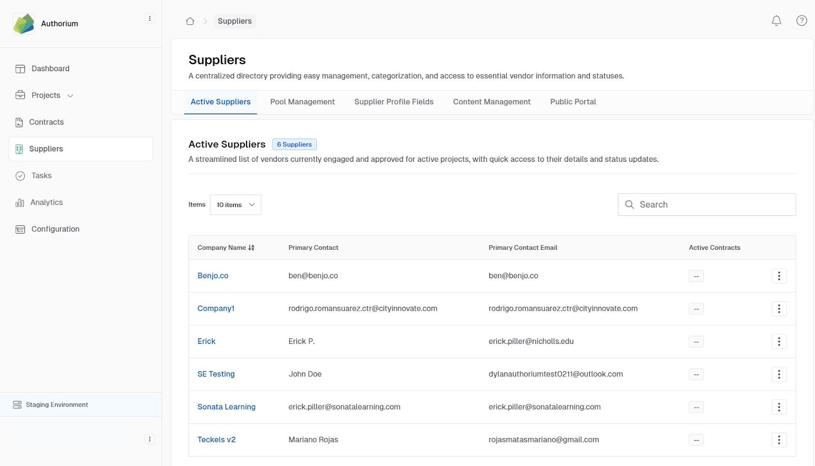 - Creation of supplier primary contact profiles.
